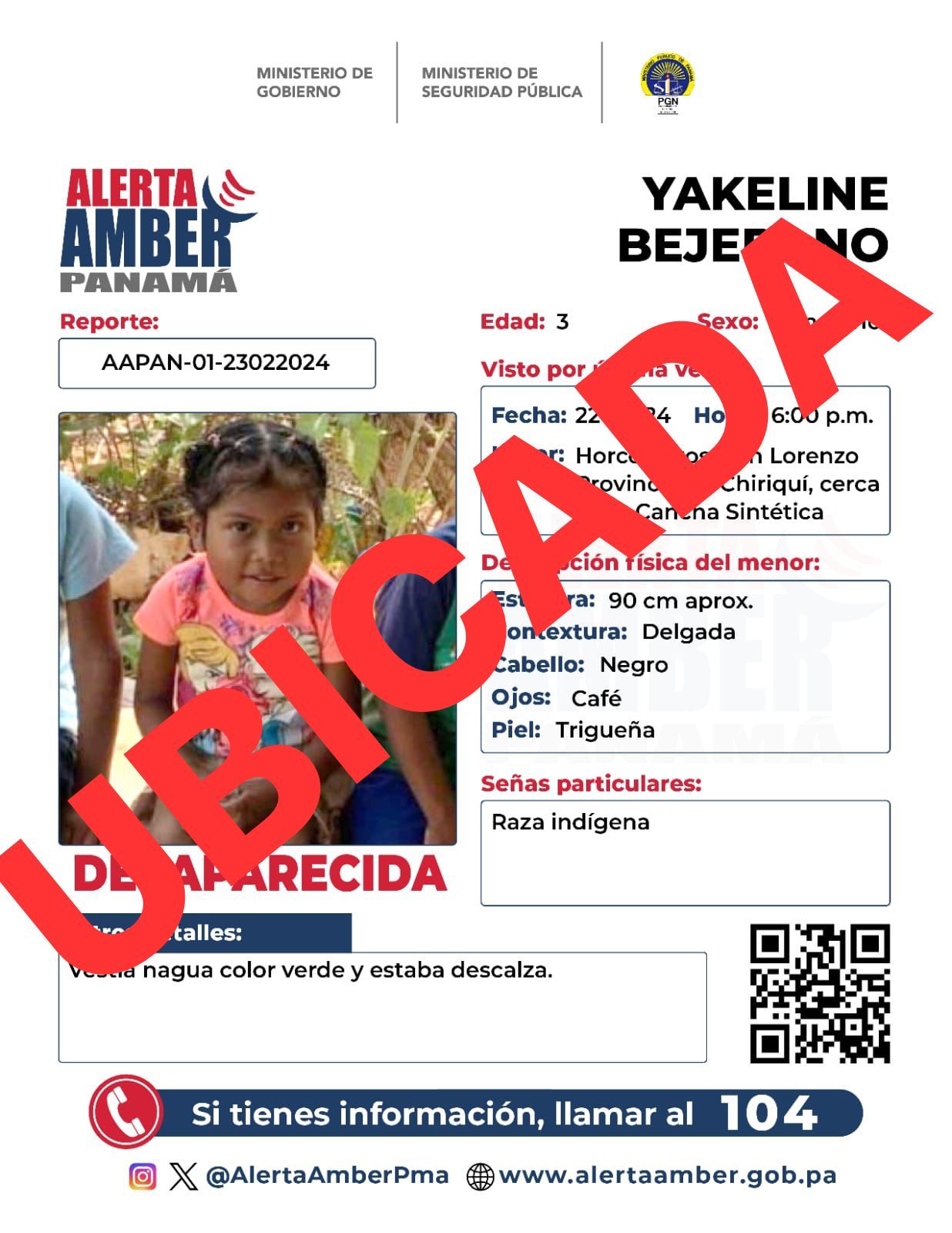 NIÑA ES ENCONTRADA SANA Y SALVA TRAS ALERTA AMBER PANAMÁ