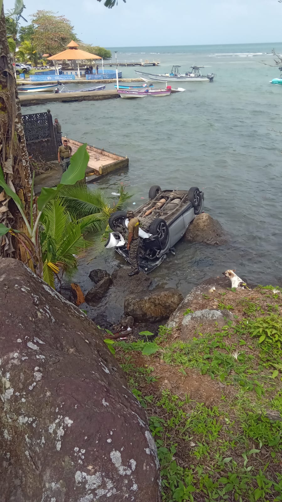 VALIENTES POLICÍAS SALVAN LA VIDA DE UNA FAMILIA LUEGO QUE SU AUTO CAE AL MAR EN PORTOBELO