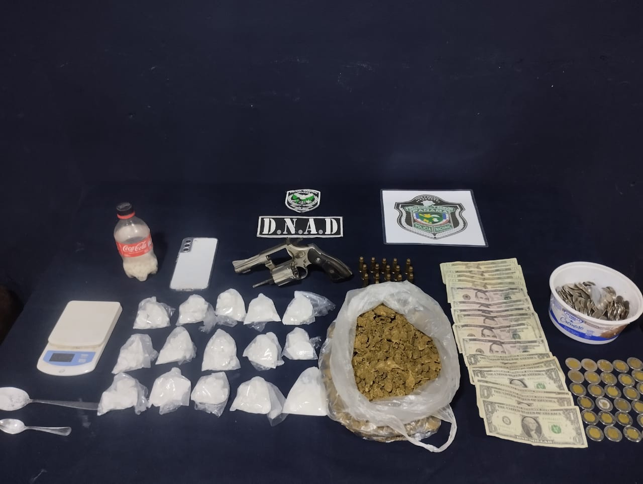 POLICÍA APREHENDE A DOS PERSONAS, DECOMISA ARMA DE FUEGO Y PRESUNTA DROGA EN AGUADULCE