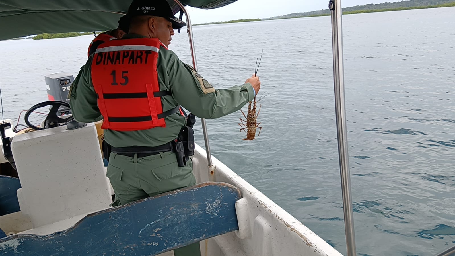 POLICÍA CONDUCE ANTE LA AUTORIDAD COMPETENTE A 4 PERSONAS Y LIBERA 20 LANGOSTAS SIN LA TALLA PARA SU COMERCIALIZACIÓN