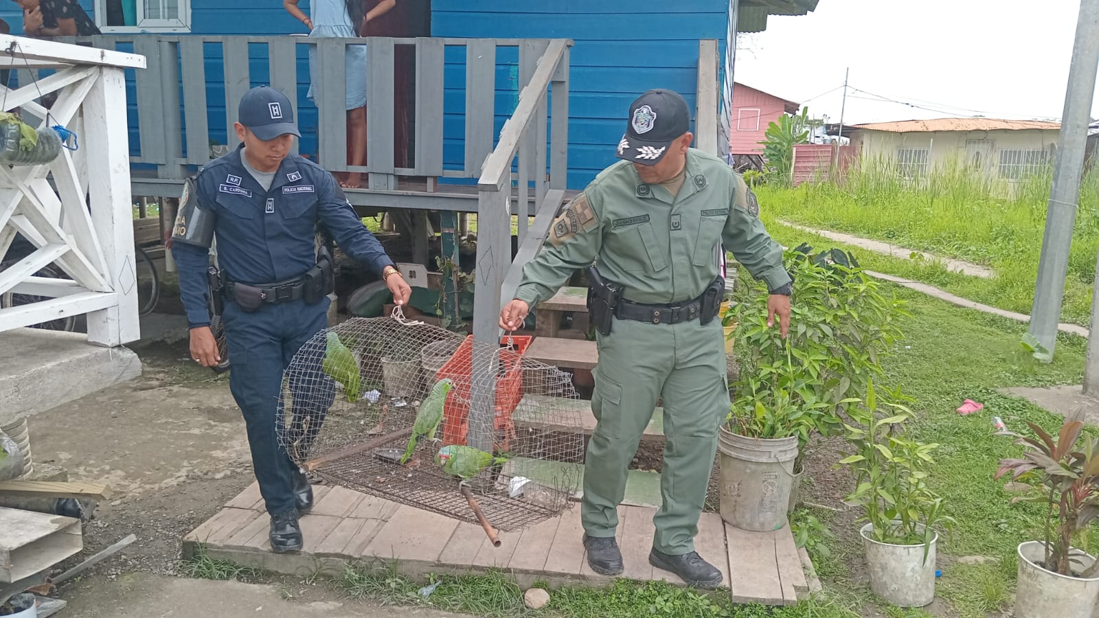 POLICÍA RESCATA TRES LOROS CABEZA ROJA EN CAUTIVERIO