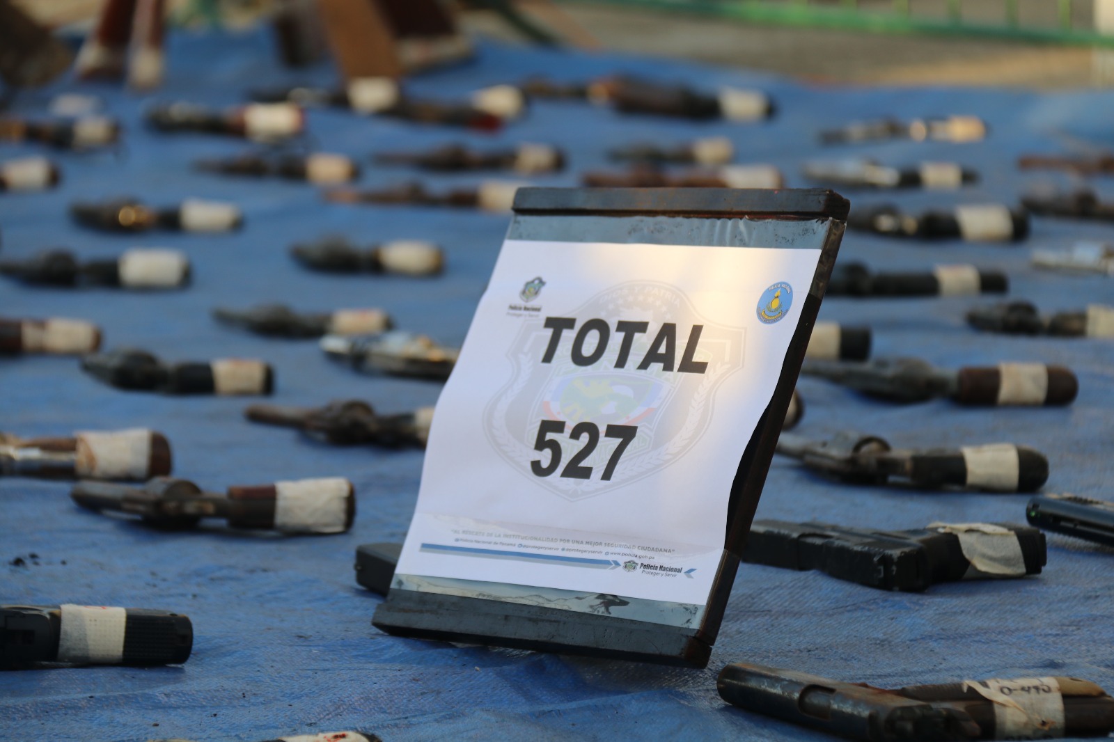 UNAS 527 ARMAS DE FUEGO FUERON DESTRUIDAS DURANTE UNA CEREMONIA EN LA POLICÍA NACIONAL