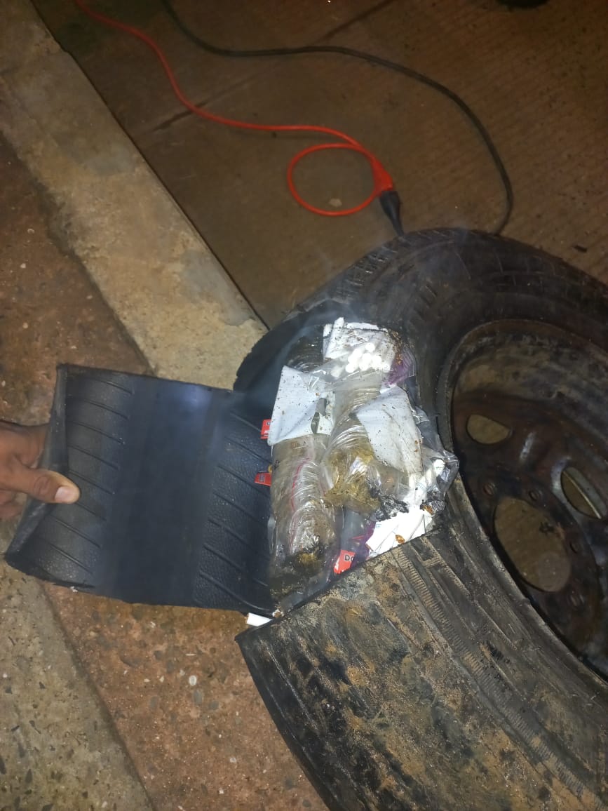 POLICÍA DA CON EL HALLAZGO DE PRESUNTA DROGA Y ARMA DE FUEGO OCULTAS EN LA LLANTA DE UN AUTO