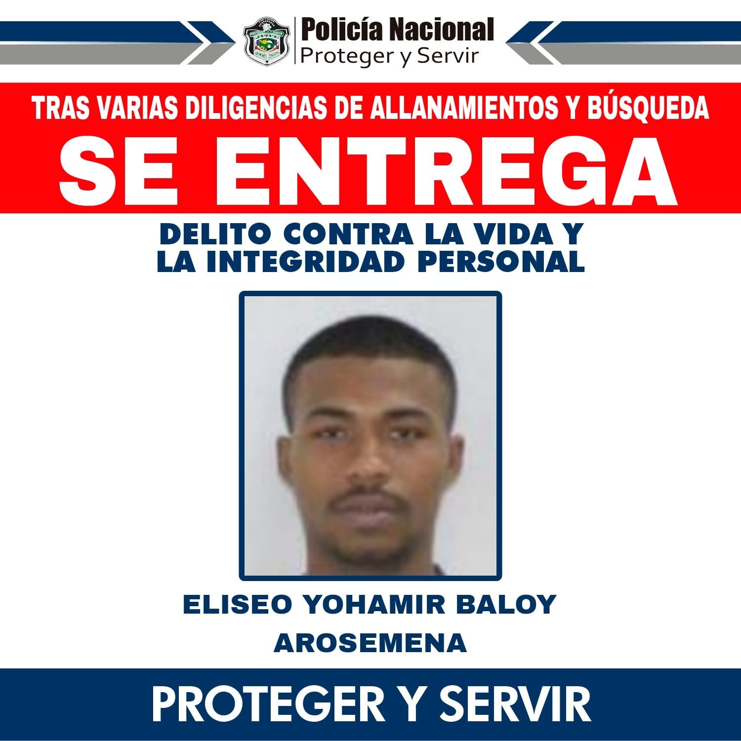 ELISEO YOHAMIR BALOY AROSEMENA, UNO DE LOS MÁS BUSCADOS SE ENTREGA ANTE LAS AUTORIDADES COMPETENTES